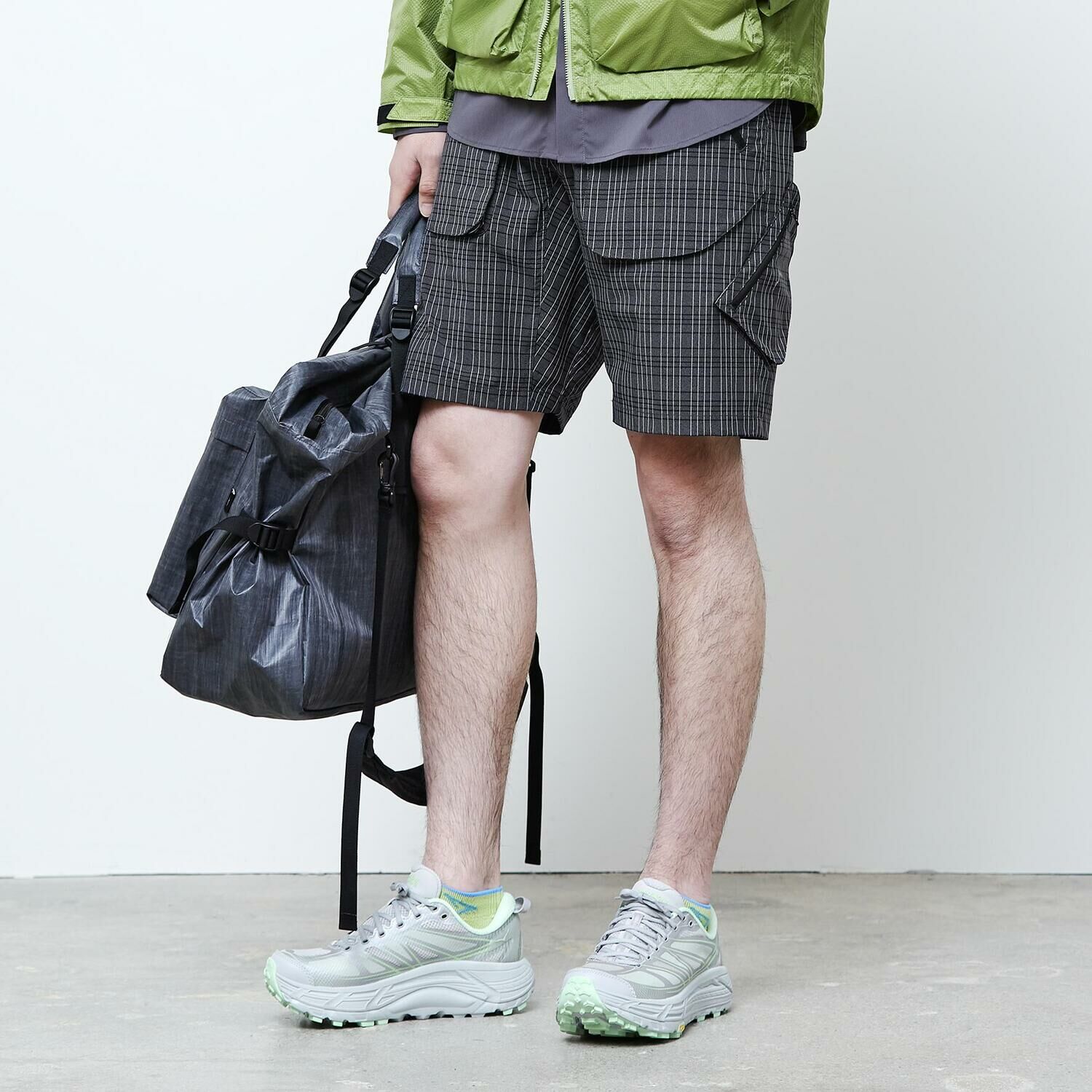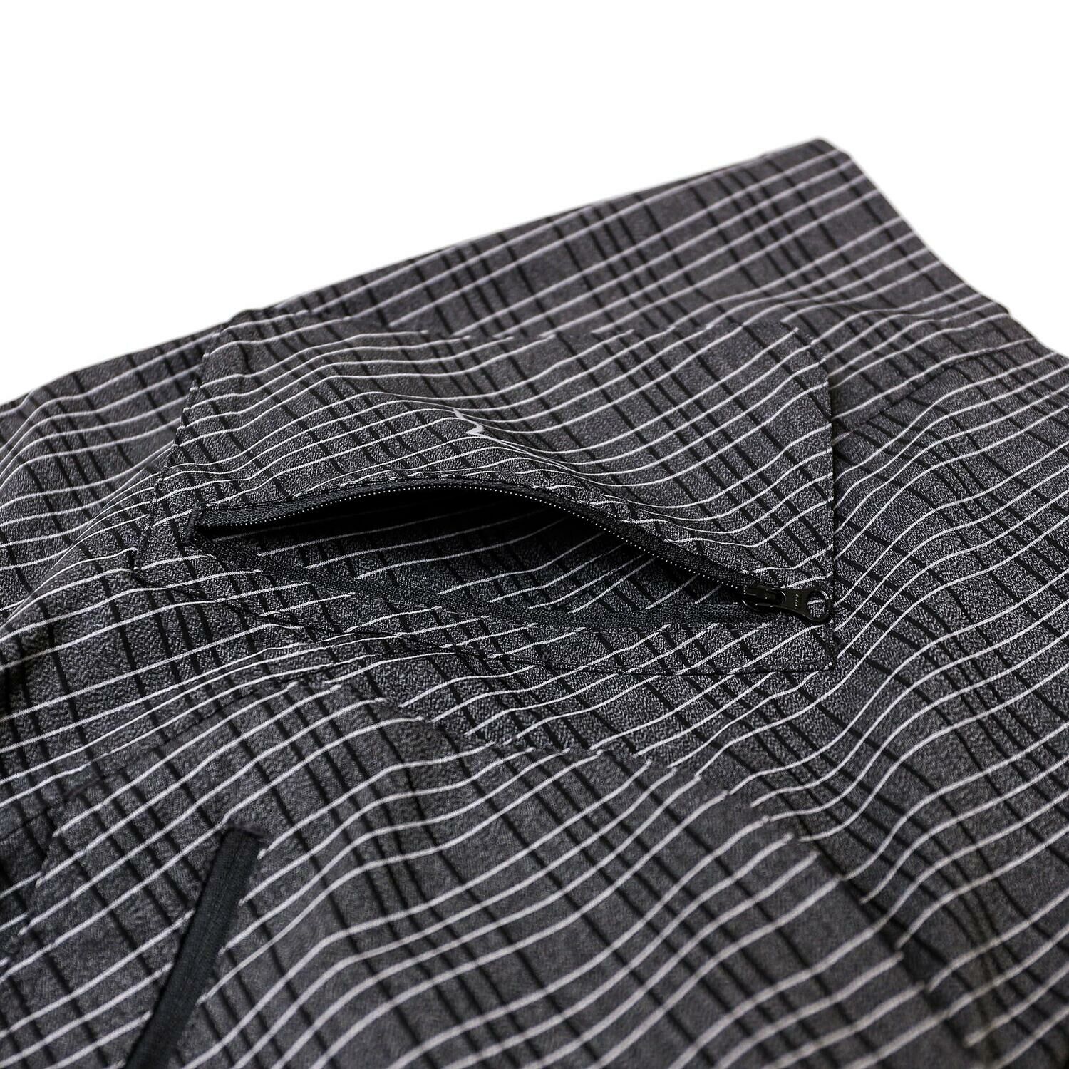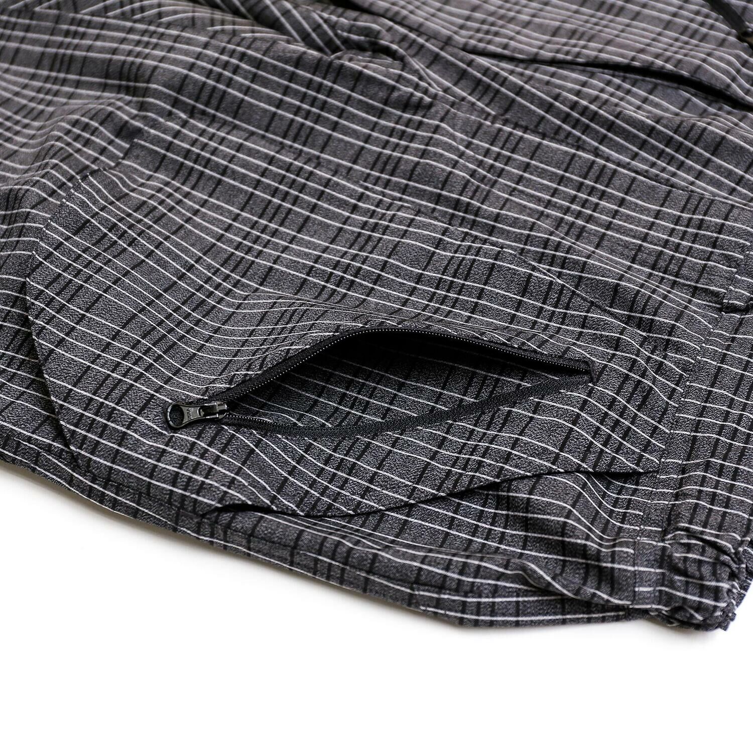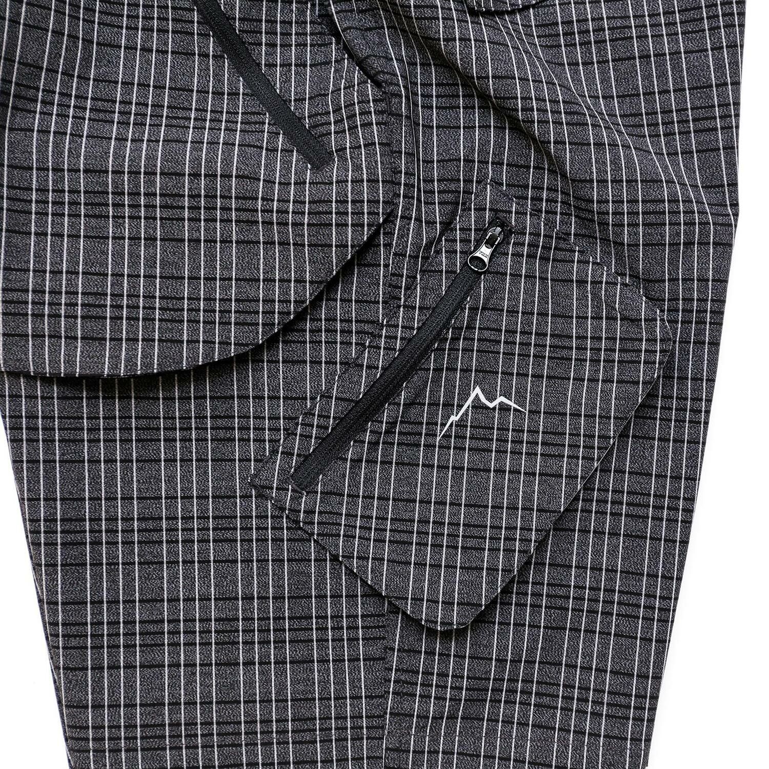這款短褲使用了彈性優良的尼龍彈性面料製作,前面和側面設有寬敞的口袋,是這款產品的特點。