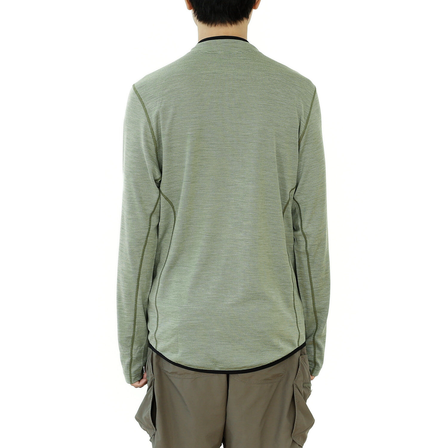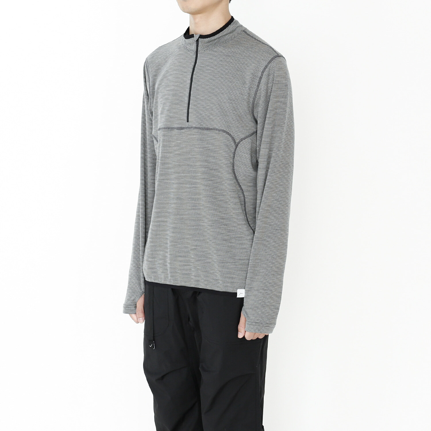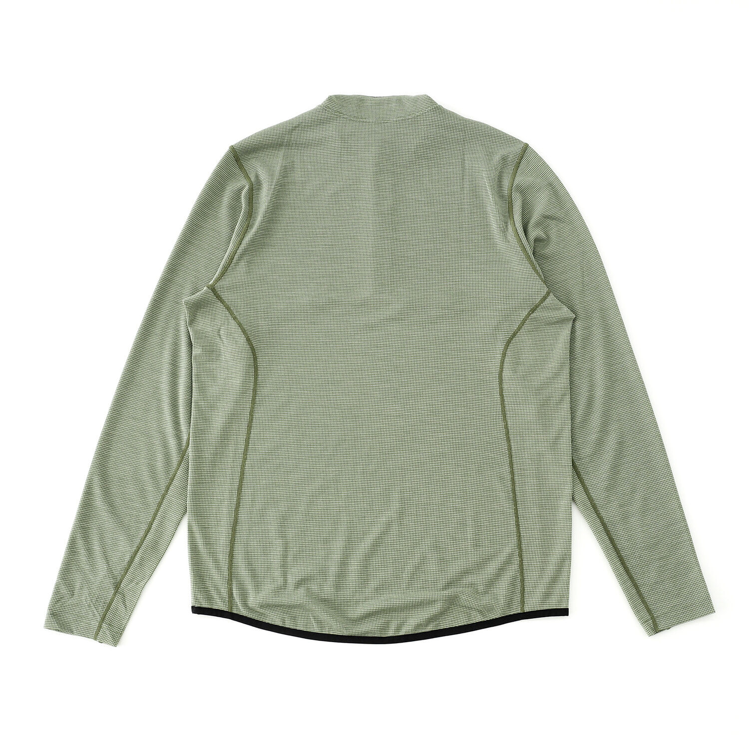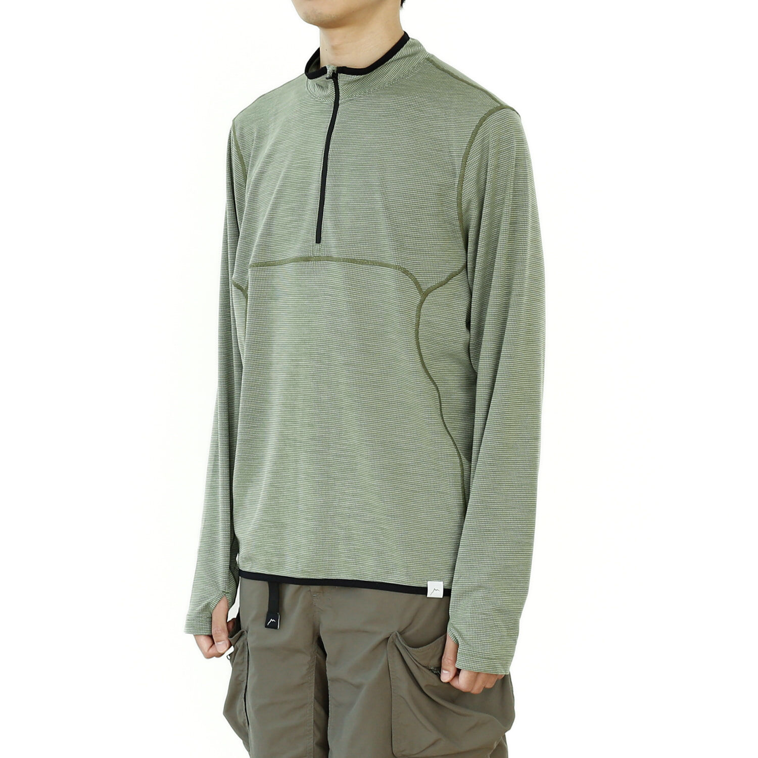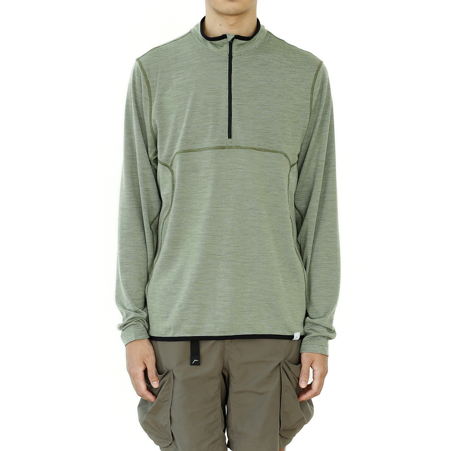 這款 半開拉鍊長袖上衣 採用 美麗諾羊毛 (Merino Wool) 與 Coolmax® 機能纖維 為主要材質,兼具 抗菌、除臭、吸濕、快乾與保暖 等多功能特性