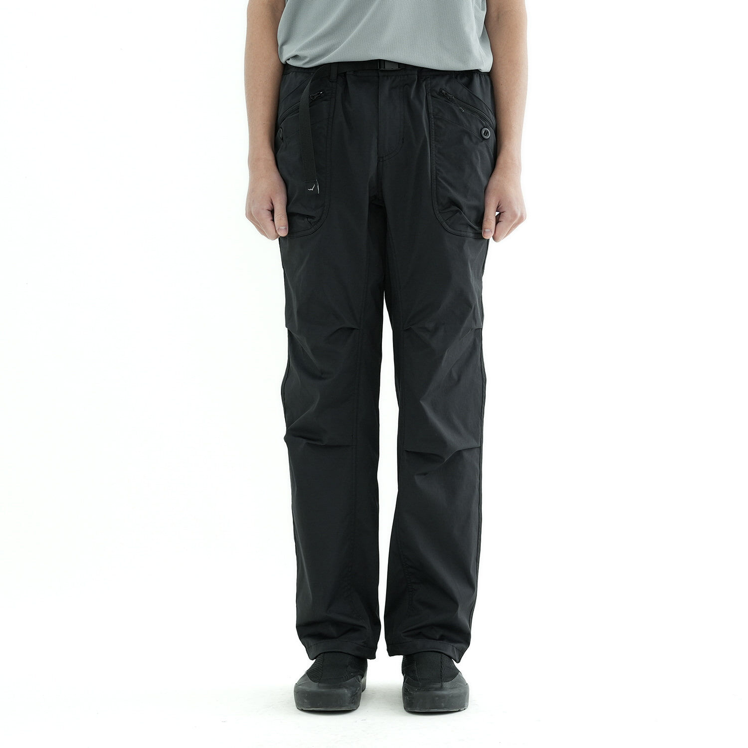 這款長褲採用尼龍、棉與彈性纖維混紡布料製成,適合換季期間穿著。 兼具舒適性與機能性,透過多口袋設計與立體剪裁,提升活動自由度與收納便利性。