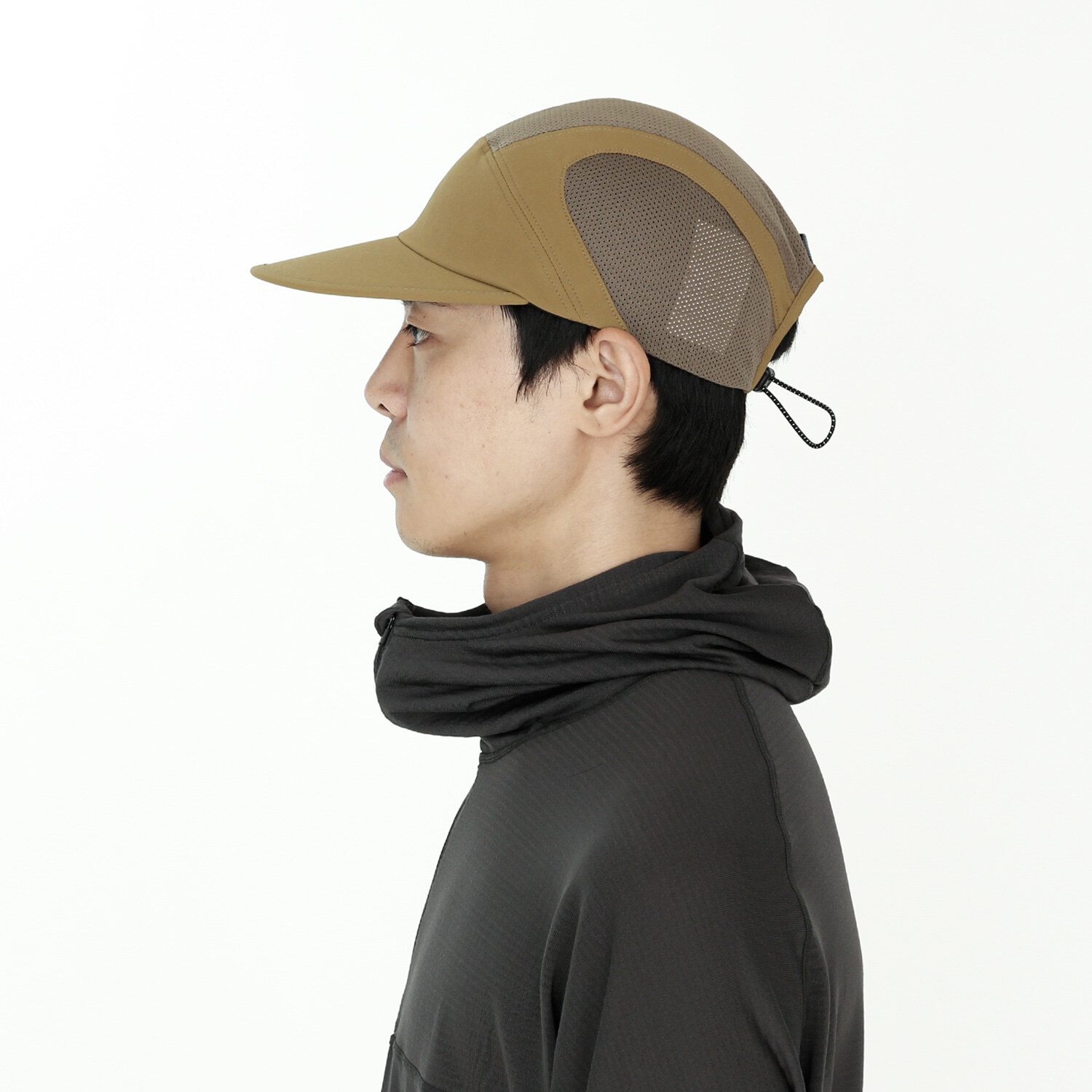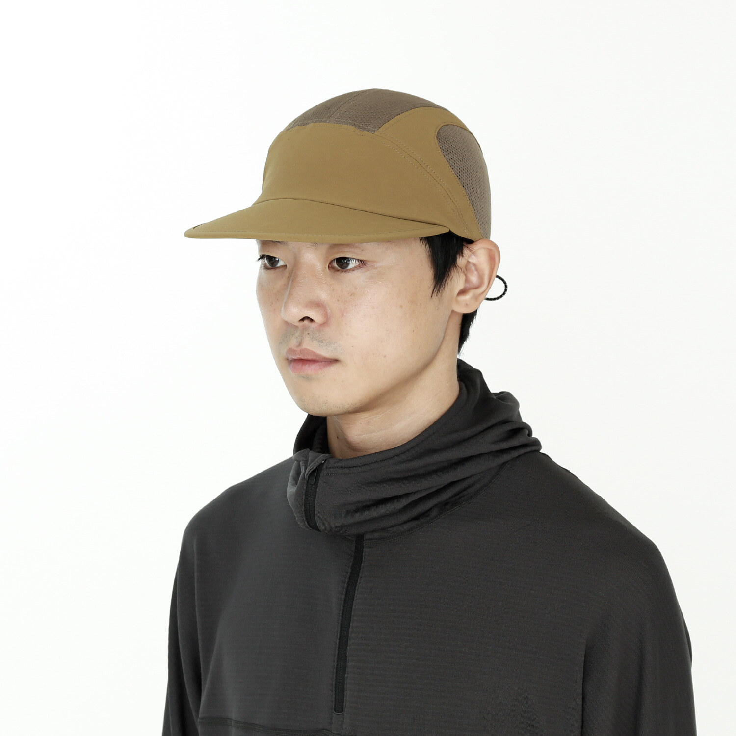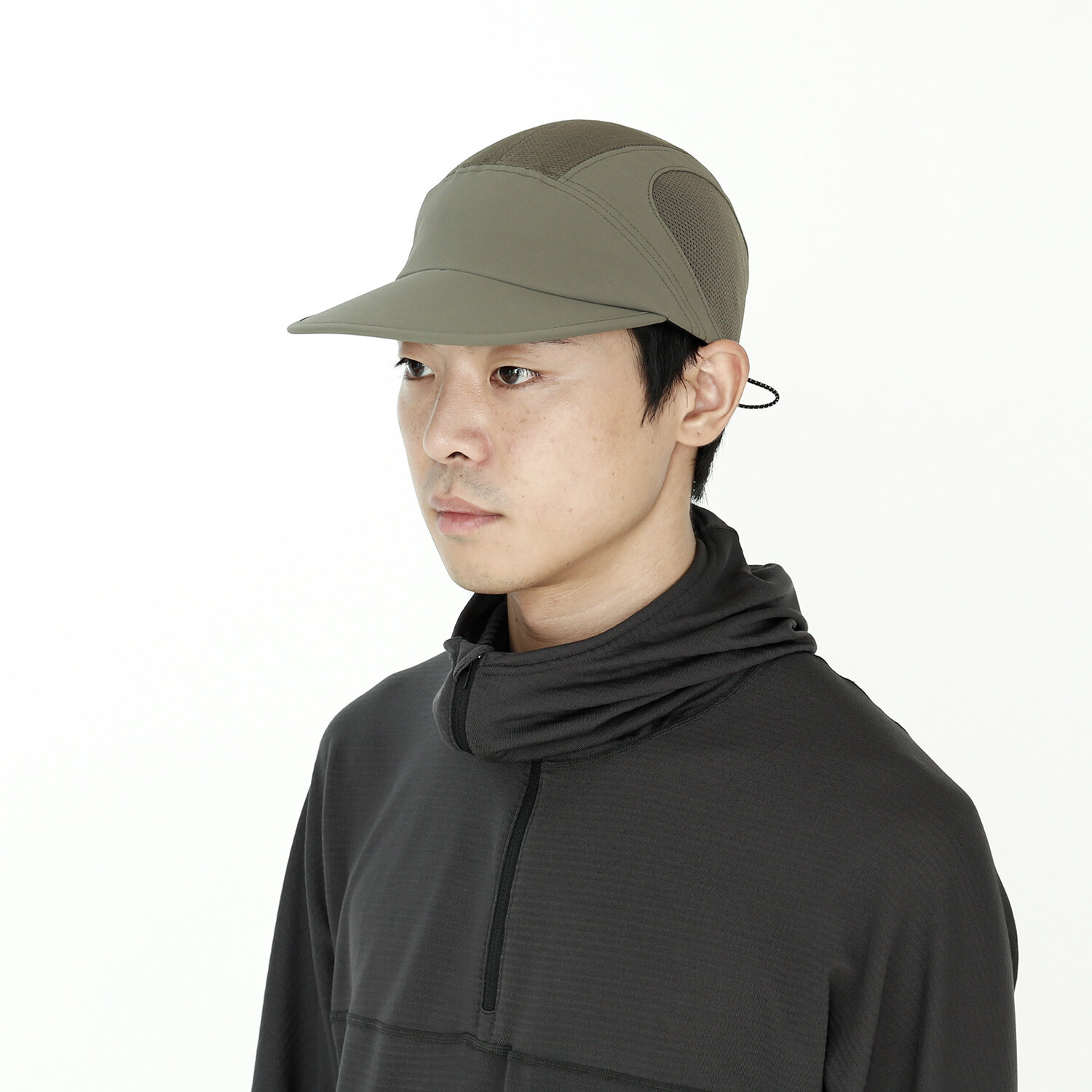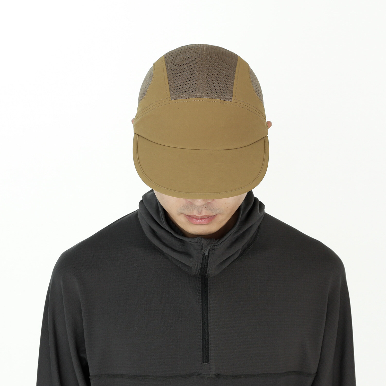 本款帽子以具良好透氣性的磨毛布料與網眼布料混合製成,兼具微保暖性與優異的通風性,提供舒適的配戴體驗。