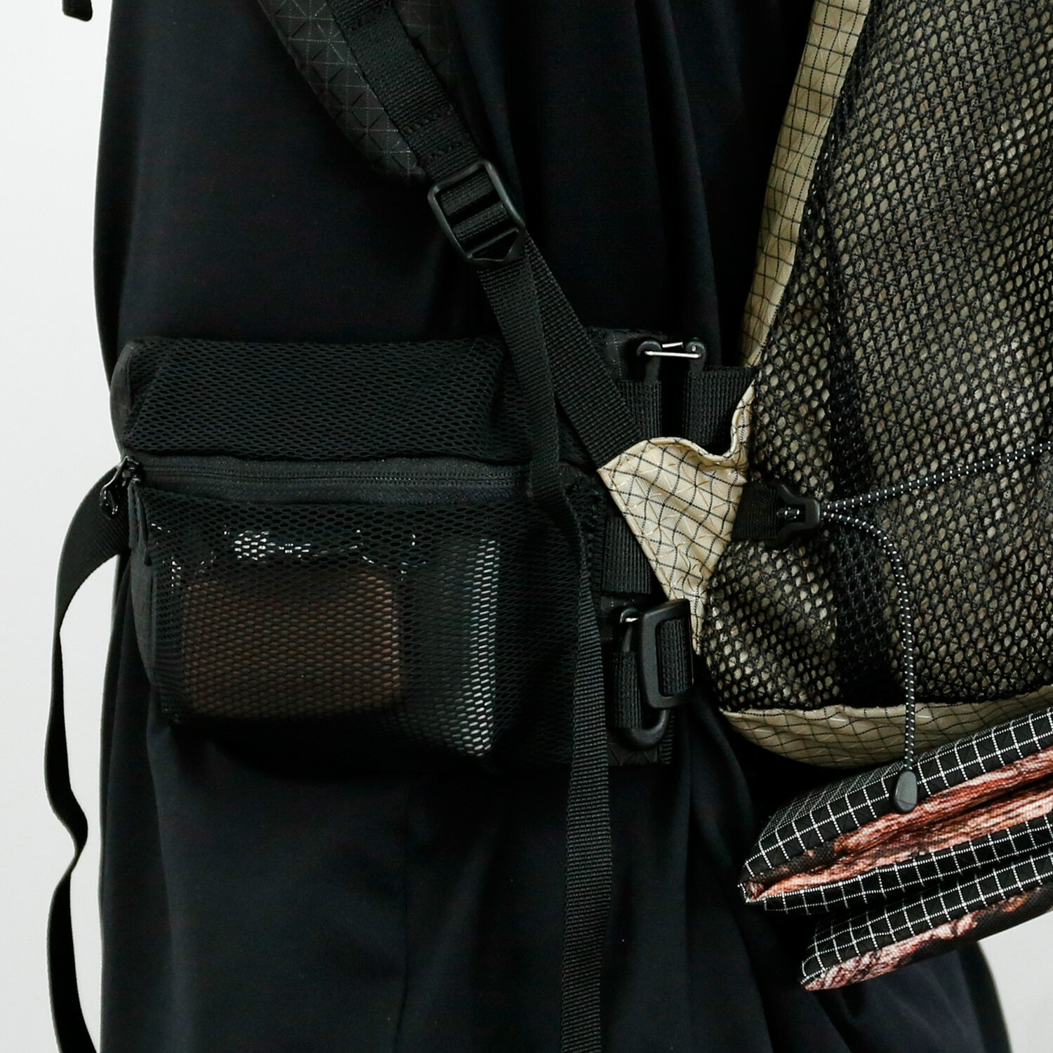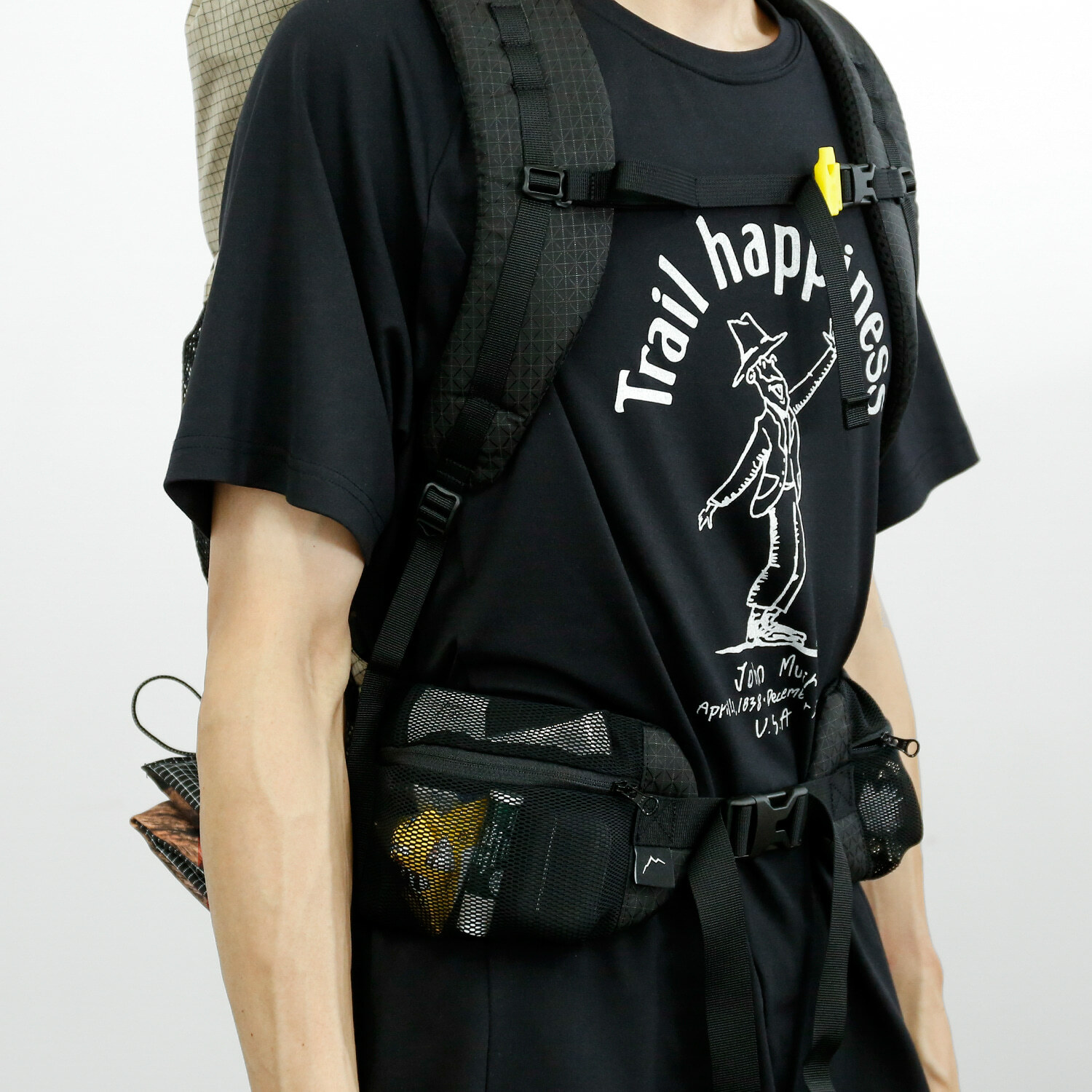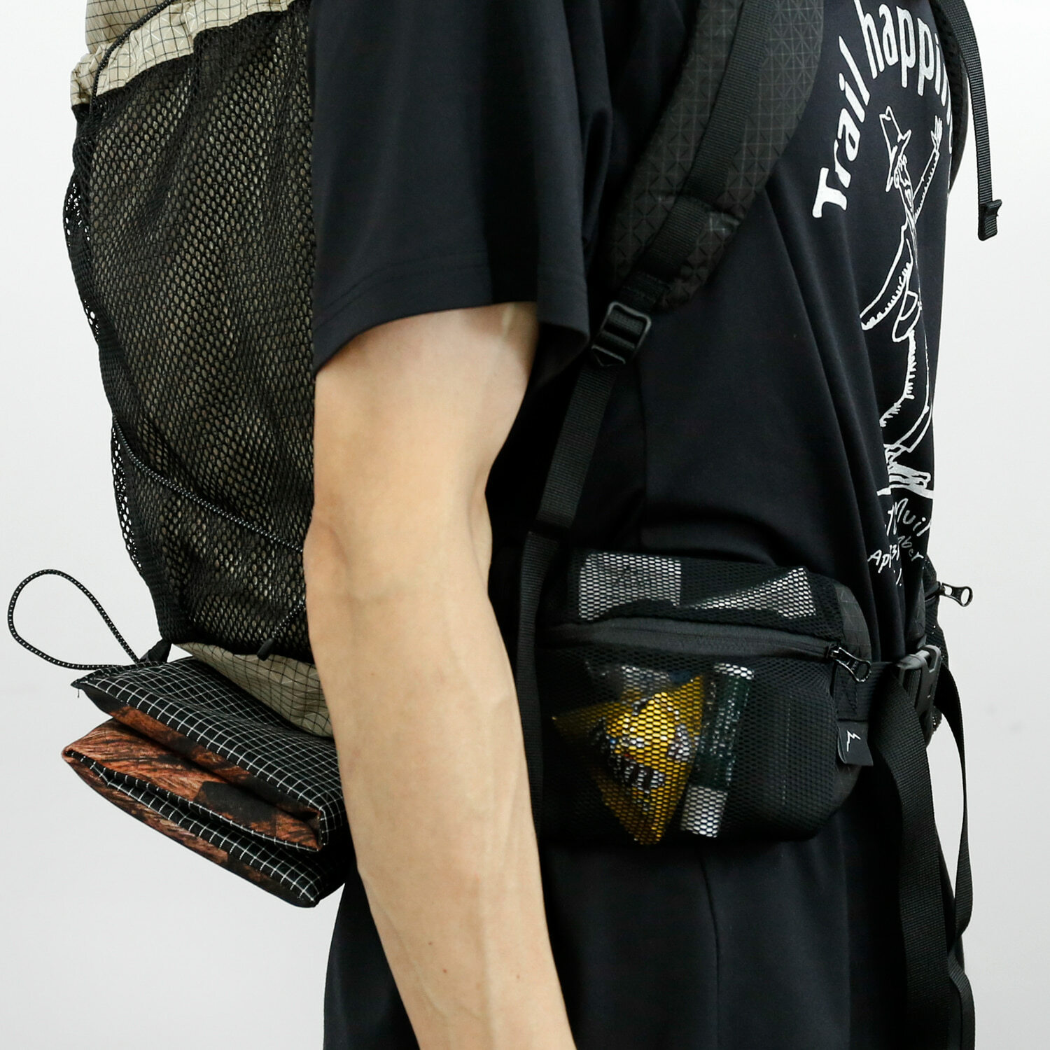 這款改良型的可拆卸腰帶適用於Mari、Gaya和其他相似結構的背包。原有的織帶已被去除,取而代之的是可拆卸式的腰帶,增加了實用性與靈活性。腰帶上的口袋採用彈性網眼布料製成,因此具有良好的伸縮性,便於存放小物品。
