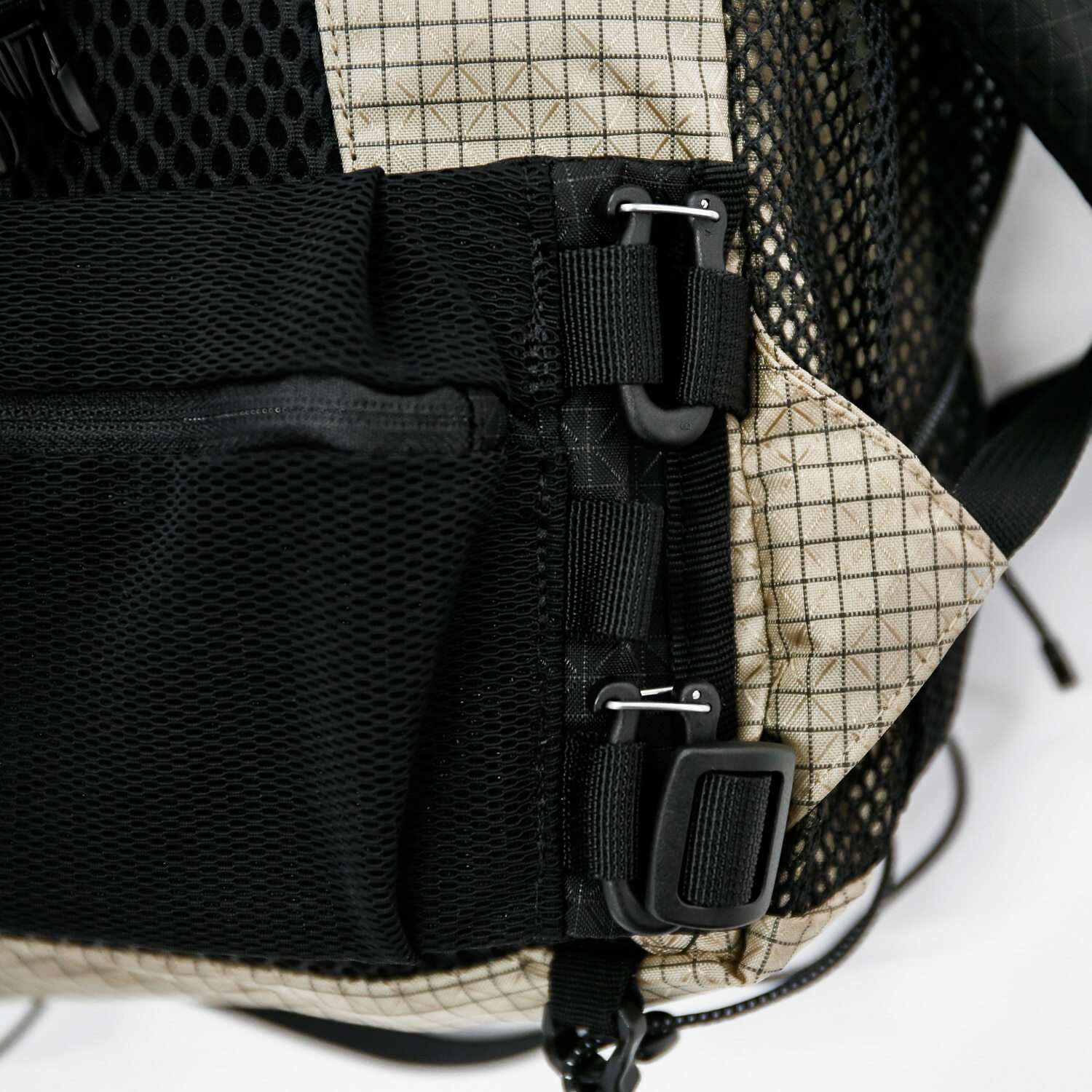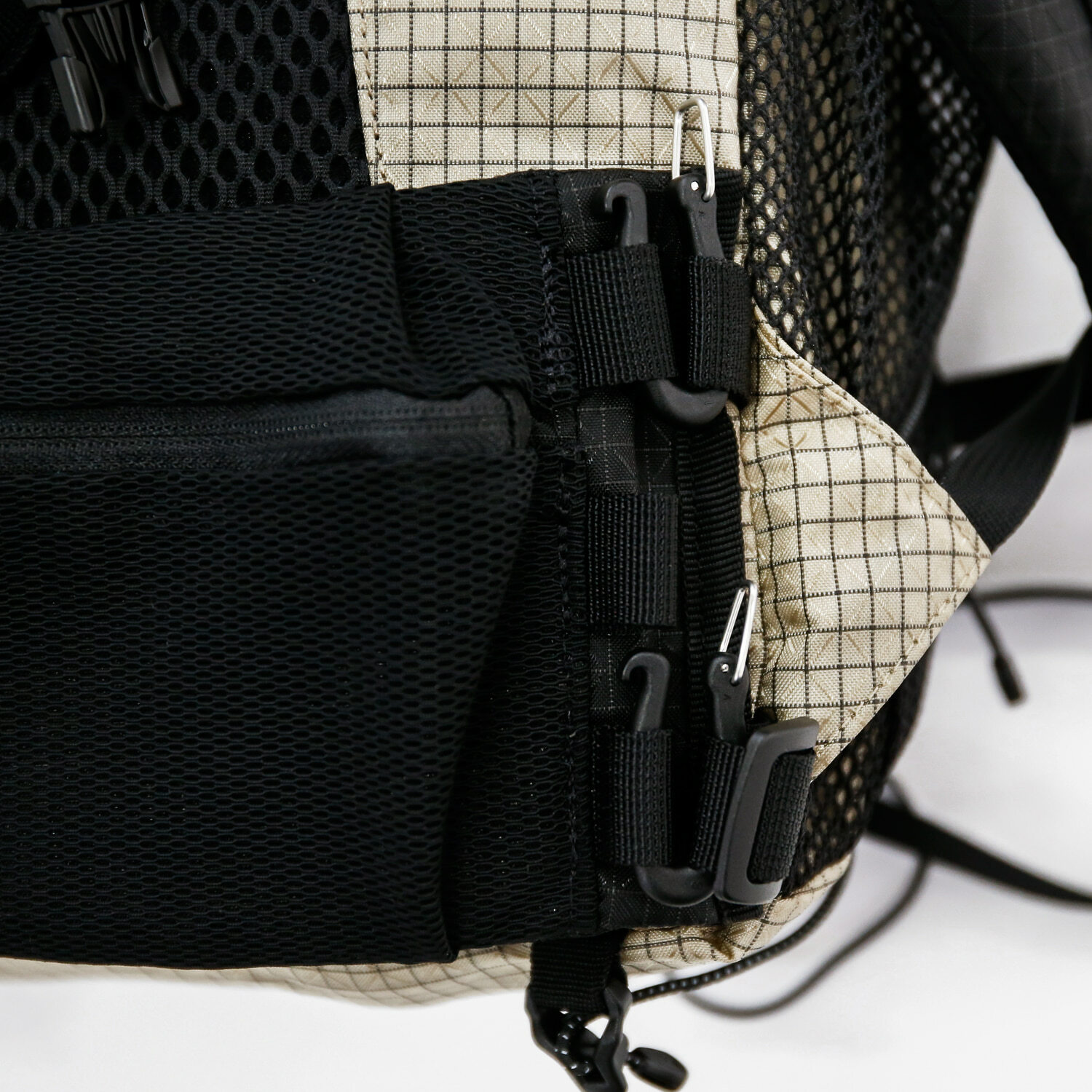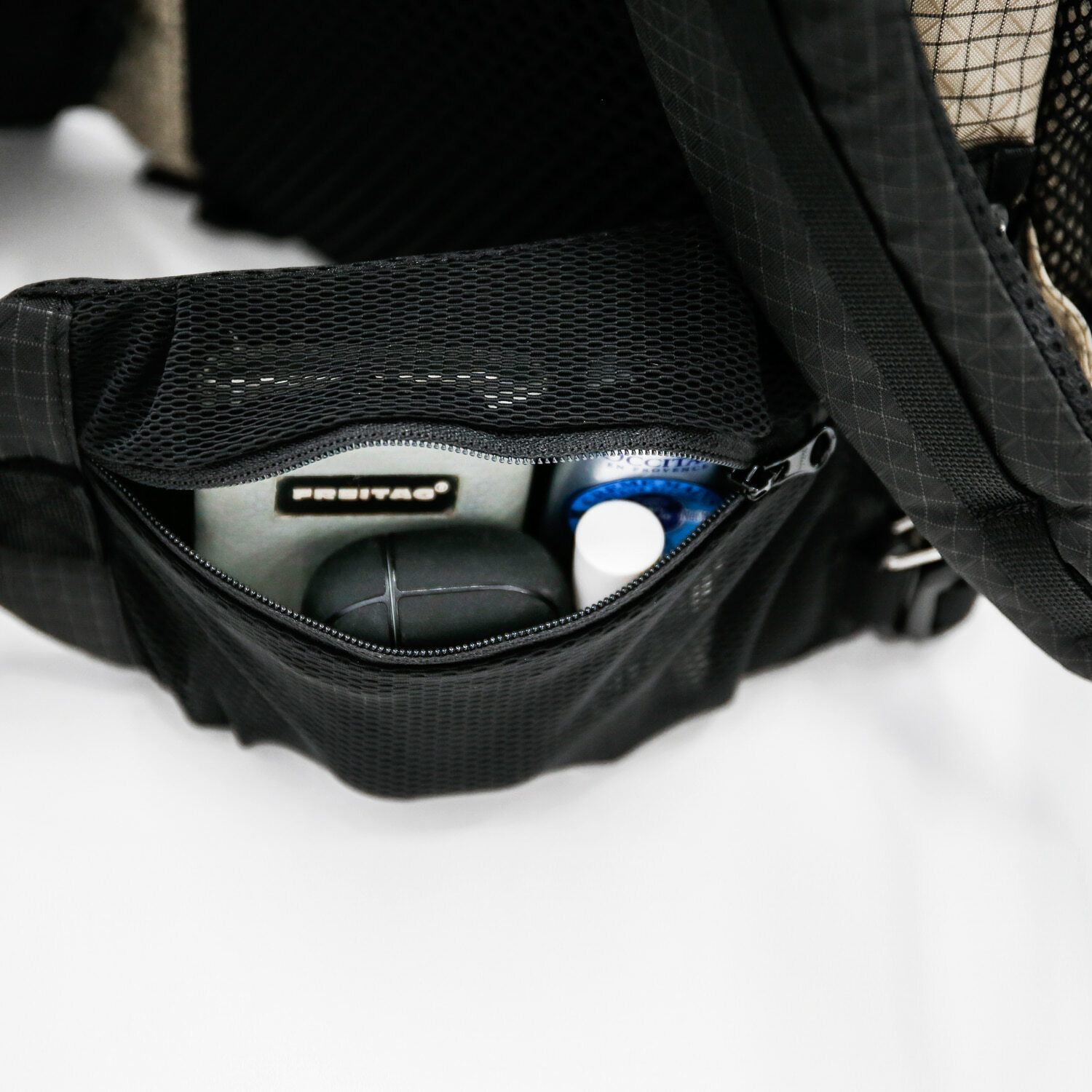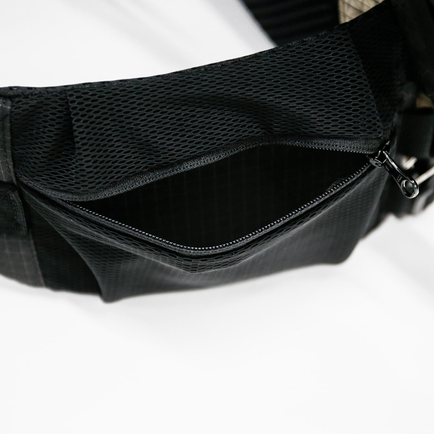 這款改良型的可拆卸腰帶適用於Mari、Gaya和其他相似結構的背包。原有的織帶已被去除,取而代之的是可拆卸式的腰帶,增加了實用性與靈活性。腰帶上的口袋採用彈性網眼布料製成,因此具有良好的伸縮性,便於存放小物品。