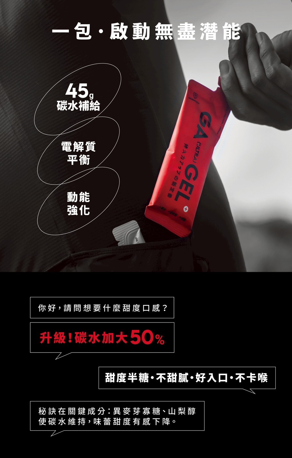 六大複合型碳水,易消化,吸收效率更佳,進而提供續航持久的能量供應。