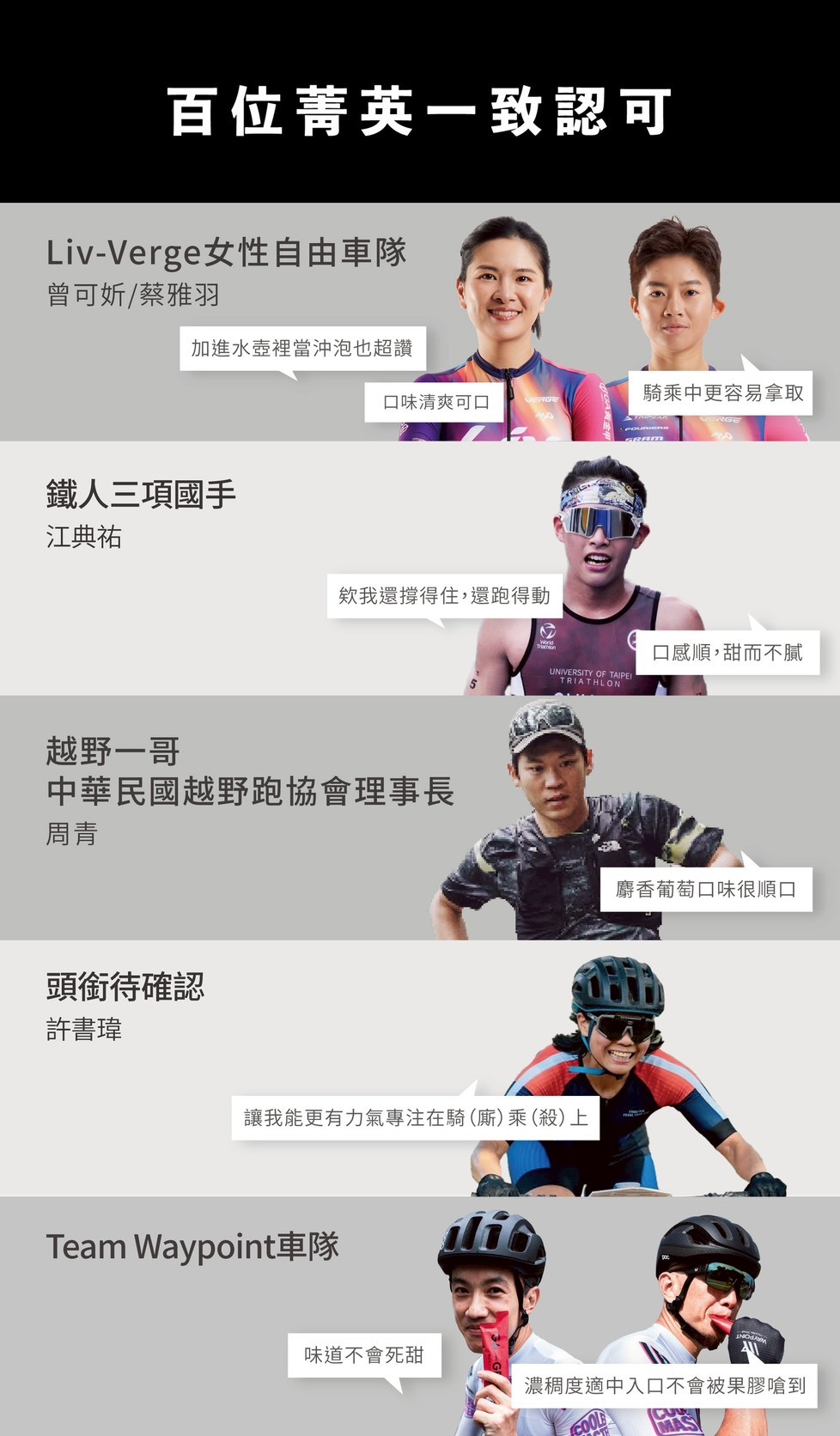 ✔️ 戶外運動愛好者(單車、登山等)