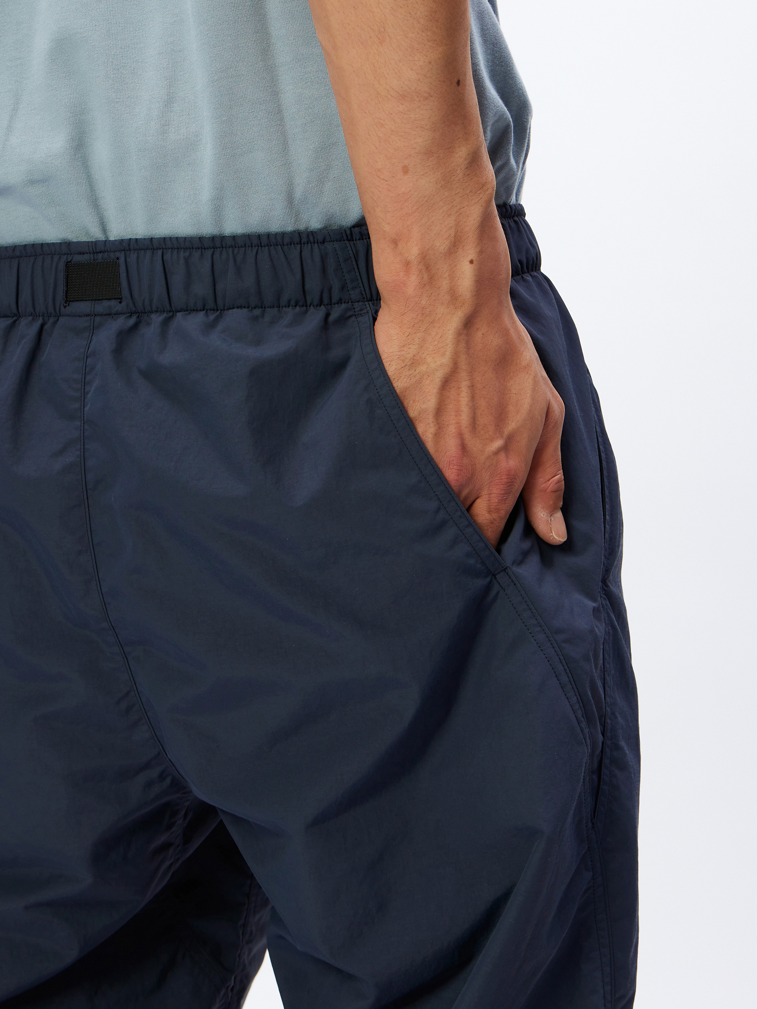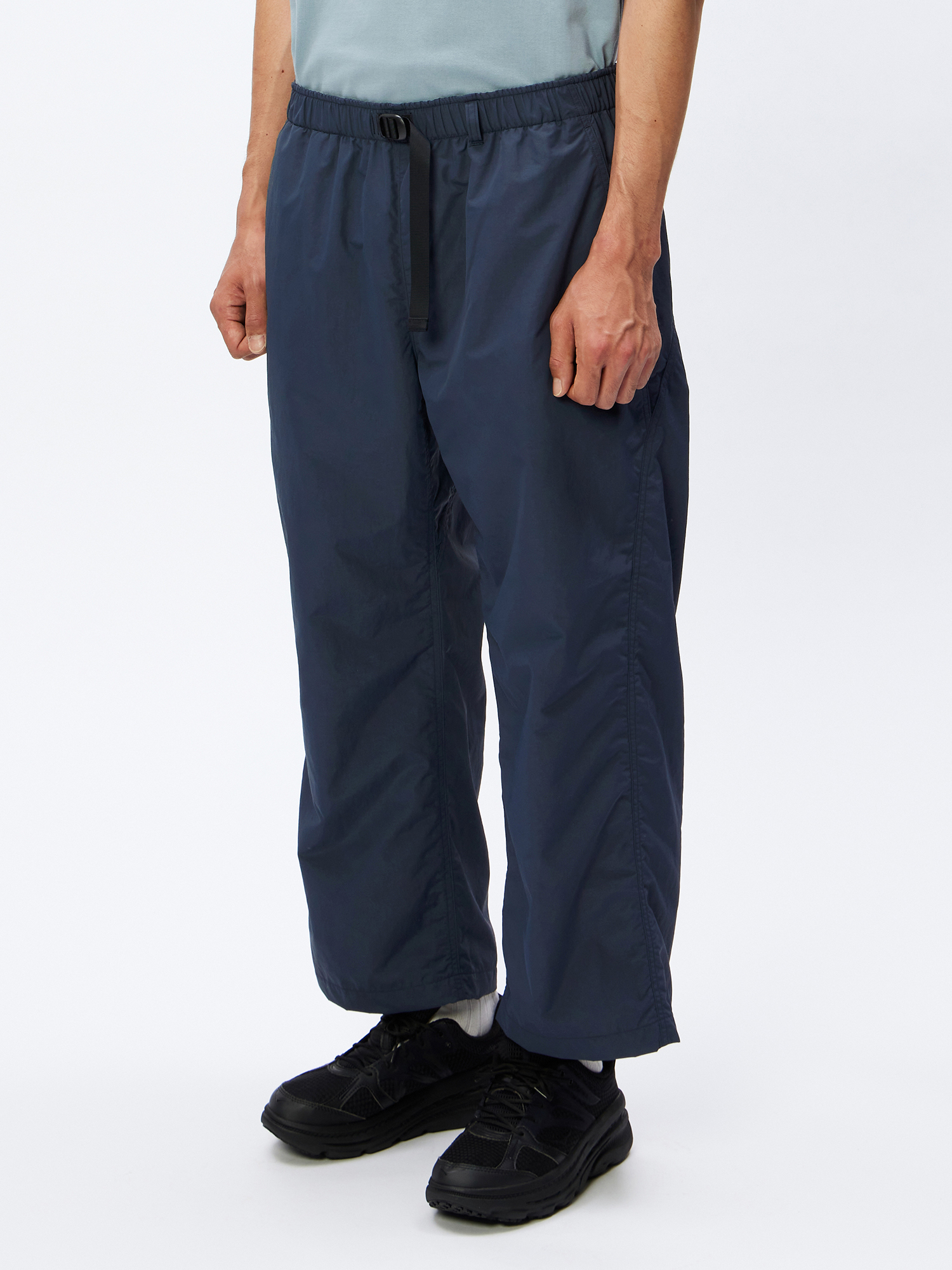 寬鬆直筒剪裁:全長寬鬆直筒剪裁,襠部有插片設計,增加活動靈活性。褲腳有抽繩可調節。