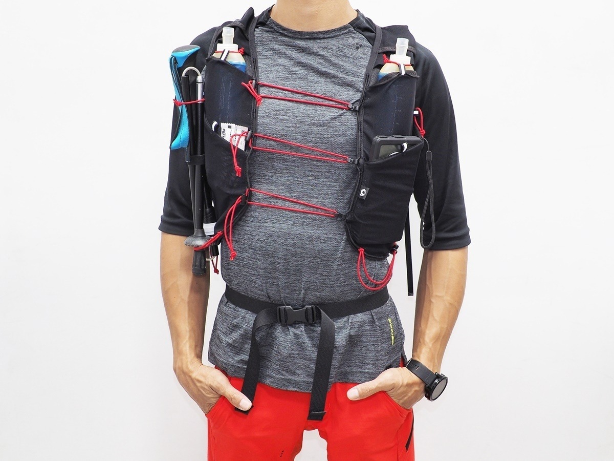 兩側腋下位置設計的彈性口袋,適合收納跑動中較少拿取的錢包、鑰匙、頭燈之類的物品,袋口亦有設計方便拿取的織帶環。