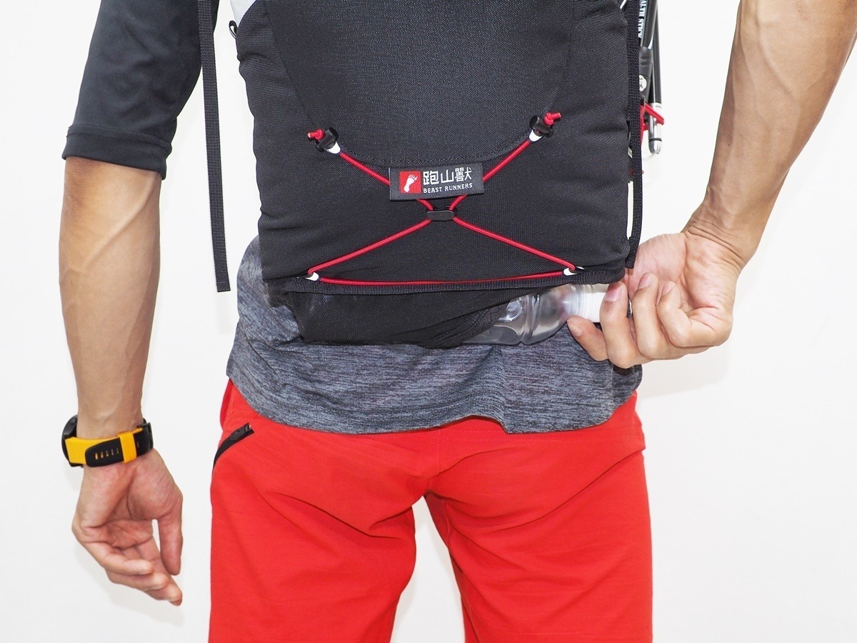兩側除了收納一般的水瓶,左右雙通快取的特別設計,也能將頭燈、濾水器或是任何行進間可能拿取的裝備收納其中,不用擔心行進間掉落卻同時不用下背包即可拿取。