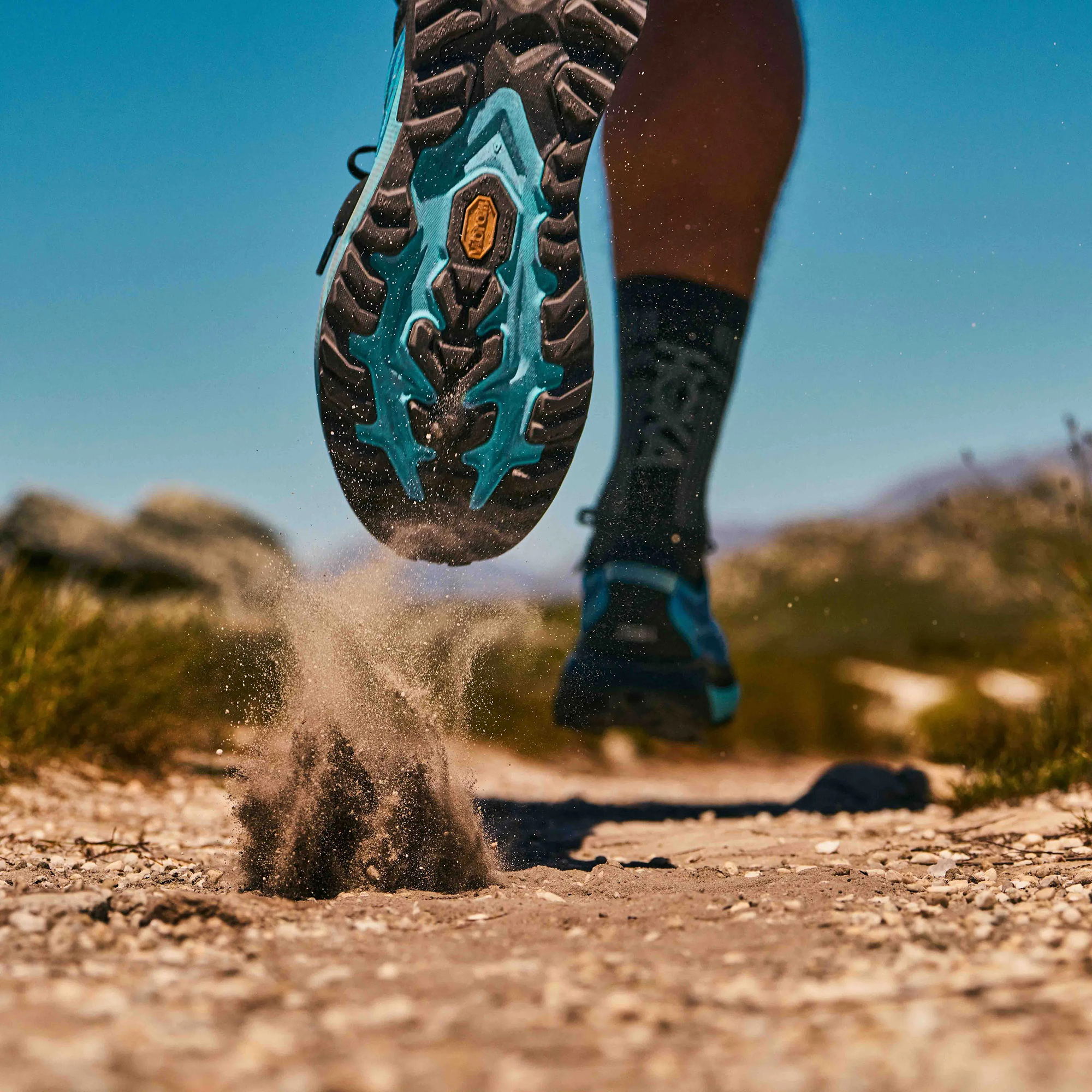 搭配Vibram® Megagrip 強悍抓地大底與深達5mm的刻痕,無論是濕滑泥地還是岩石山徑,都能穩穩掌控。
