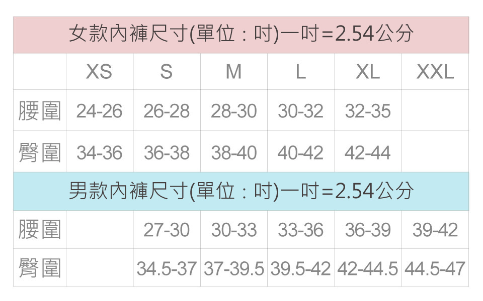 ※ 內衣褲為貼身衣褲,基於保障個人衛生,恕不提供【退/換貨服務】,請下標前確認尺寸斟酌購買。