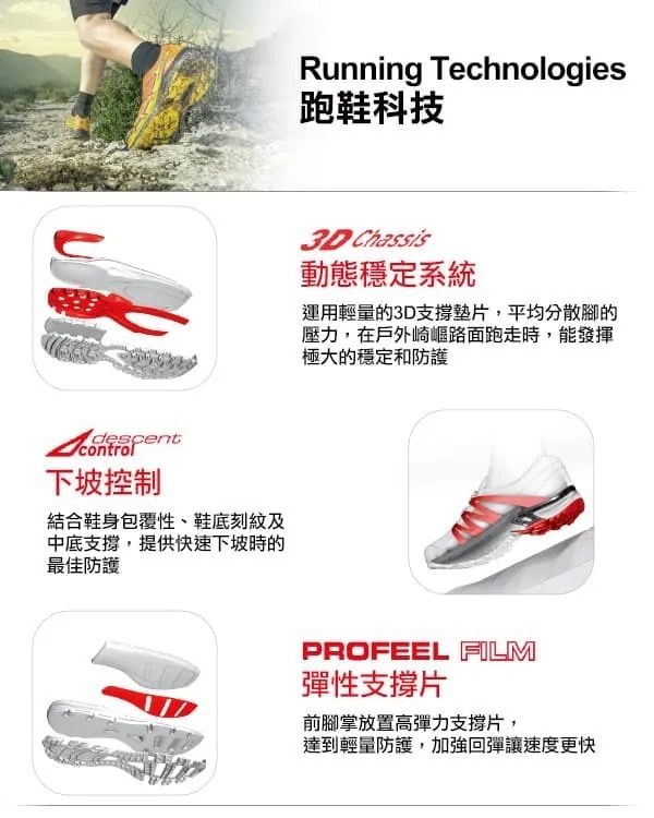 足跟差:11mm 鞋齒:3.5mm 鞋楦:寬楦 緩震:一般緩震 適用地形:全地形/岩石 適合步態:全類型步態 跑步頻率:2-3次/週 |