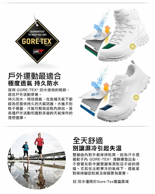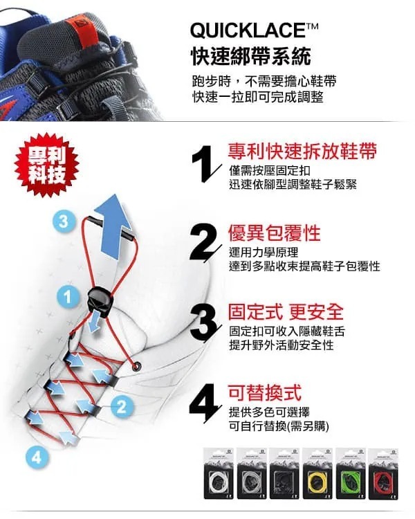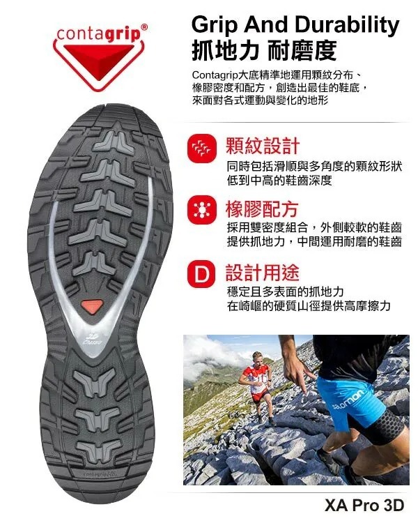 穩定性 主打3D Chassis, 低調和穩定的支撐TPU板設置在足跟區域,能改善動態控制和提供足部保護。 防護性 加強鞋頭蓋提供堅固有效的保護。 全方位 在抓地和耐用表現優異,大底的特殊刻紋設計和全地形適用的ContaGrip大底,具有較佳的黏性。 Gore-Tex防水膜可提供氣候防護。 Quicklace繫帶系統 一根細而結實的繩子可以一下子拉緊。設計易於穿脫。 |
