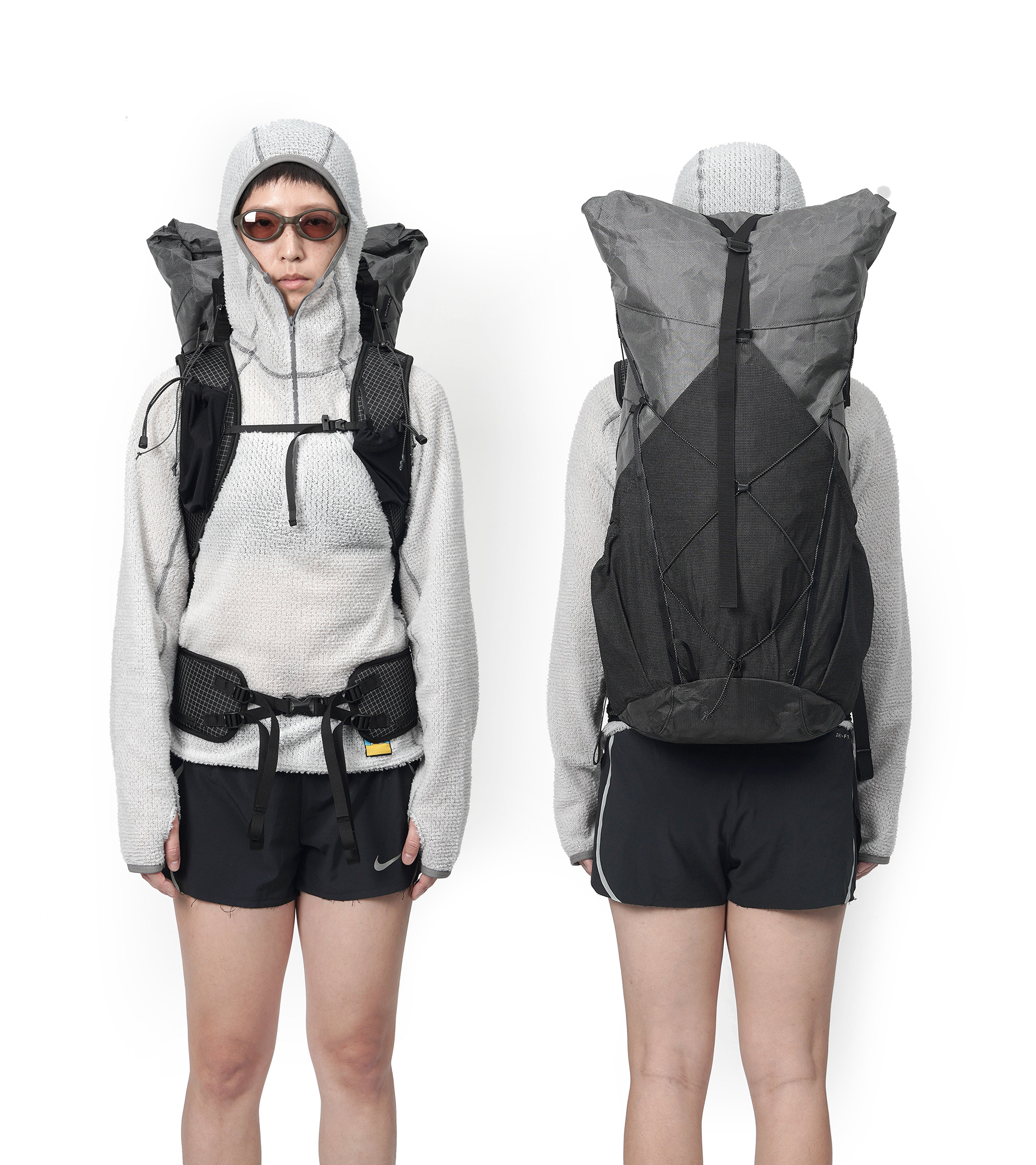 主面料: Ultra™200X in Gravel Grey 底部: Ultra™400X in Black 口袋: UltraStretch™ / Nylon Spandex 背帶&腰帶: 210D Nylon with UHMWPE ripstop 繩子:UMHWPE+3M reflective yarn 織帶:100% Nylon 框架材質:碳纖維 + 熱處理鋁合金中空管 |