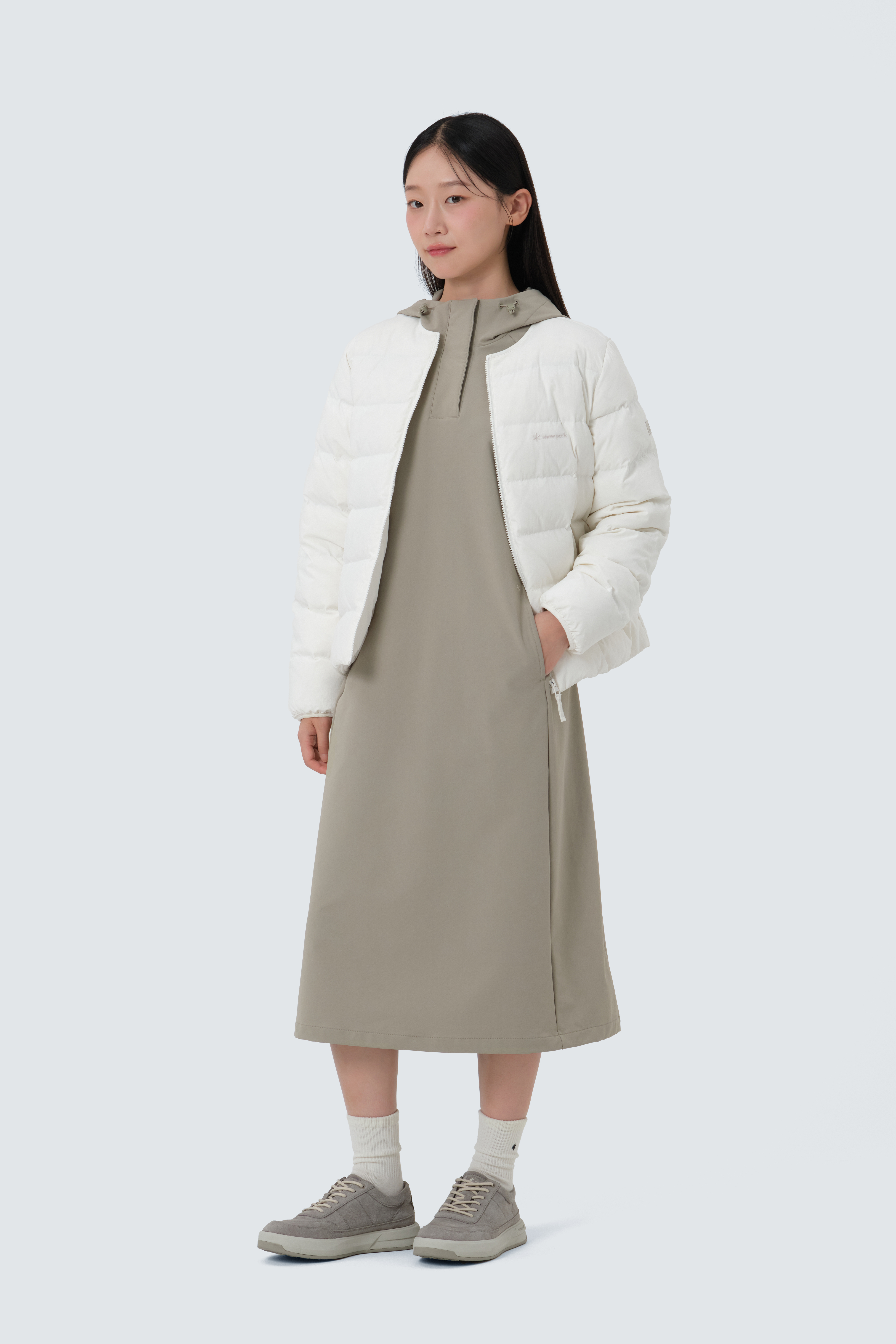 LAND 輕量羽絨外套,以 80% 高蓬鬆鴨絨 + 20% 羽毛 填充,帶來絕佳的保暖效果。輕盈不厚重,無論是城市日常穿搭,或是戶外探險旅程,都能自在應對。
