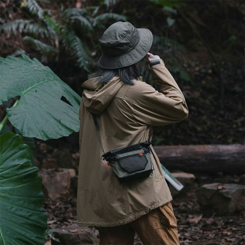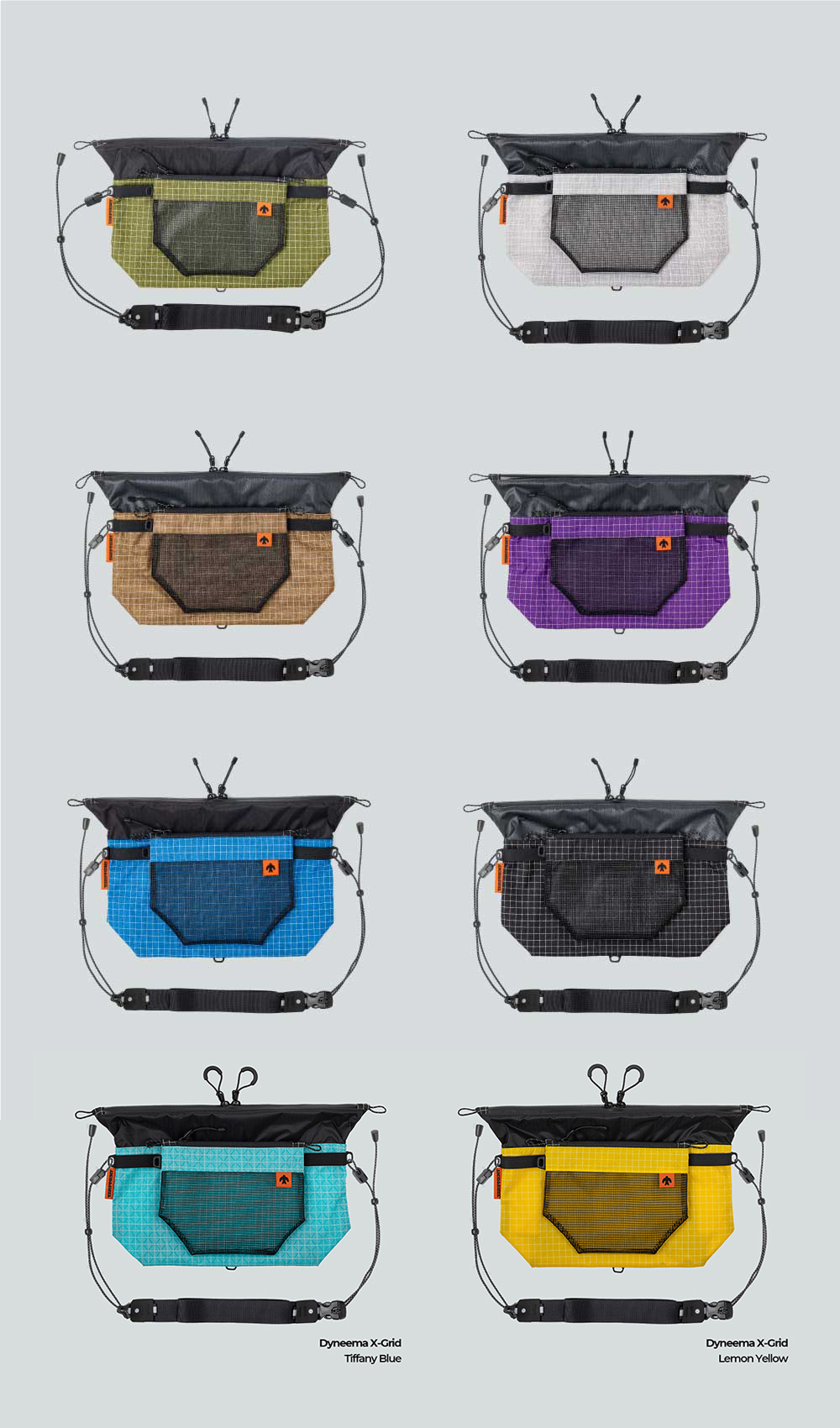 | 特色 | 側背包的最大特色是其結合式設計。主包與前方的網格口袋設計為可單獨使用,並透過按鈕與S型扣環輕鬆拆卸。 主包上方的大型拉鍊設計使取物更加方便,內部還設有小型平面口袋。前方口袋採用透明PVC網格布,便於清晰查看內部物品。 主要材質部分,使用X-Pac和Dyneema X-Grid,頂部則使用輕量且耐用的Spinnaker布料,底部選用反光材質提升夜間安全性。根據不同部位選用三種材質,提升包包的功能性和耐用性。 可調節的肩帶設計輕便,並搭載快速釋放扣,長度可在65-135cm之間調整,即使在行進中也能輕鬆調整。 【產品特點】