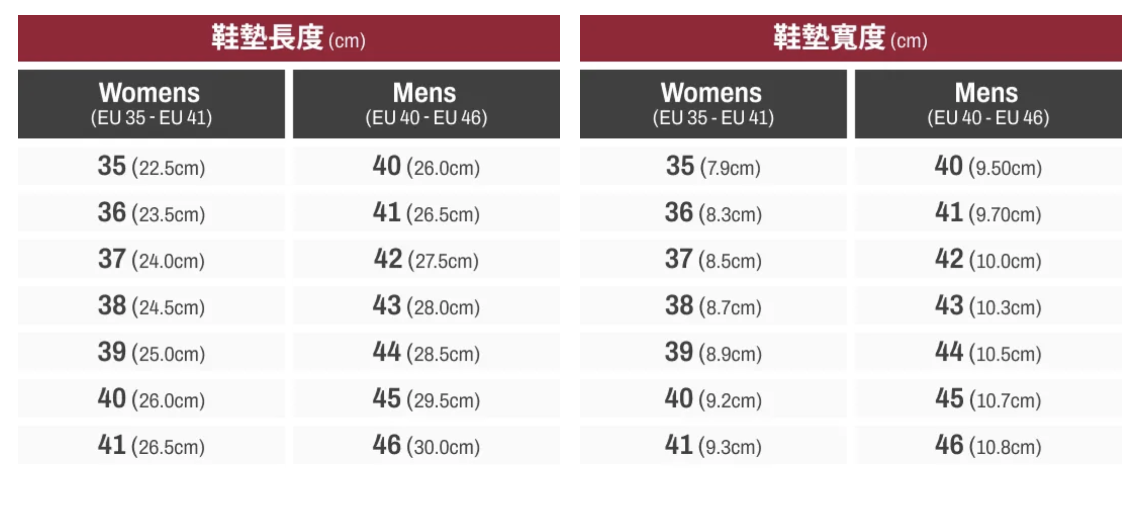 | 重量 (單腳) | 239g (EU 38|UK 5|US 7.5) |