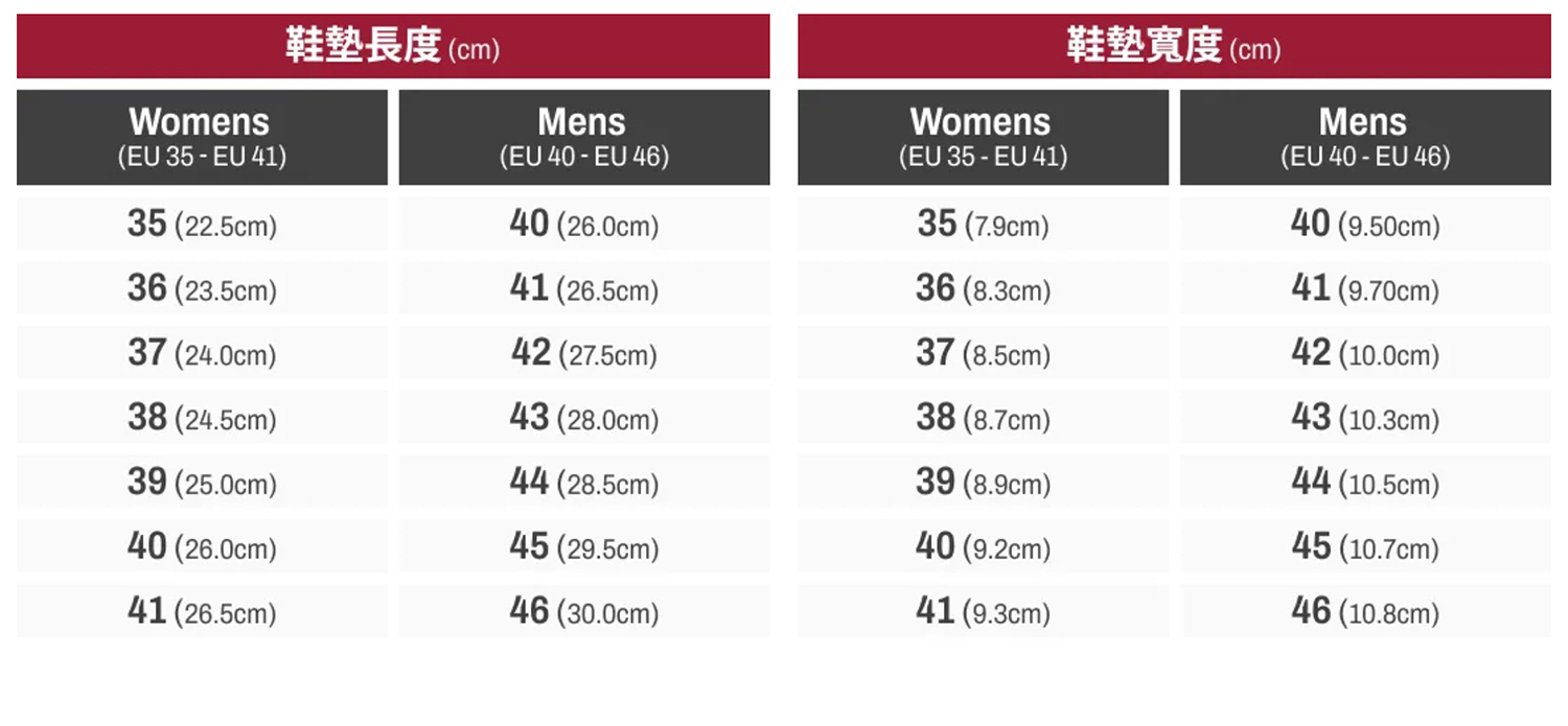 | 重量 (單腳) | 266g (EU 42|UK 8|US 9) |