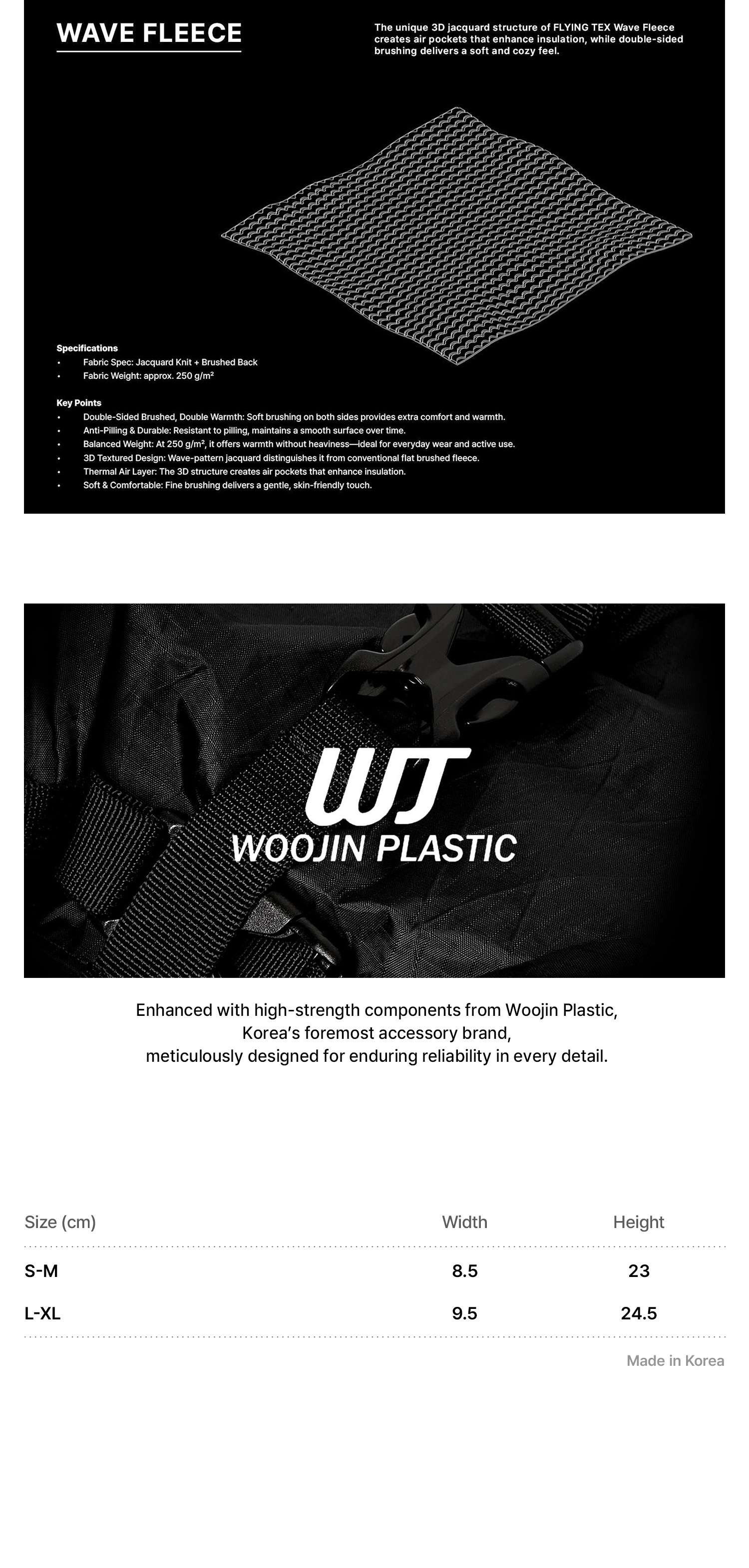 FLYING TEX Wave Fleece獨特的3D提花結構形成空氣層,提供卓越的保暖性能,雙面拉絨處理則帶來柔軟舒適的觸感。