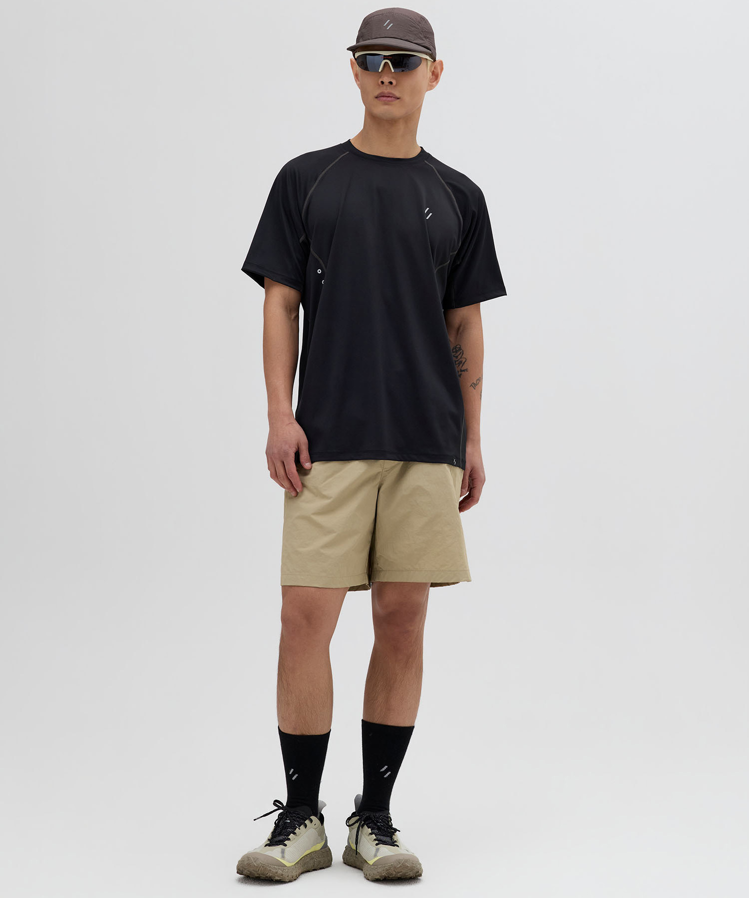 這款輕量短褲專為夏季的舒適穿著而設計。採用 135gsm 的尼龍塔絲隆 (Nylon Taslan) 布料,提供輕盈且透氣的穿著體驗。 短褲背面設有反光焊接氣孔細節以增強空氣流通,腰部配備可調節織帶腰帶,提供輕鬆且穩固的貼合感。此外,反光印花細節進一步提升了夜間活動時的辨識度與安全性。這是一款既適合輕度戶外活動,也適合日常穿著的多功能單品。