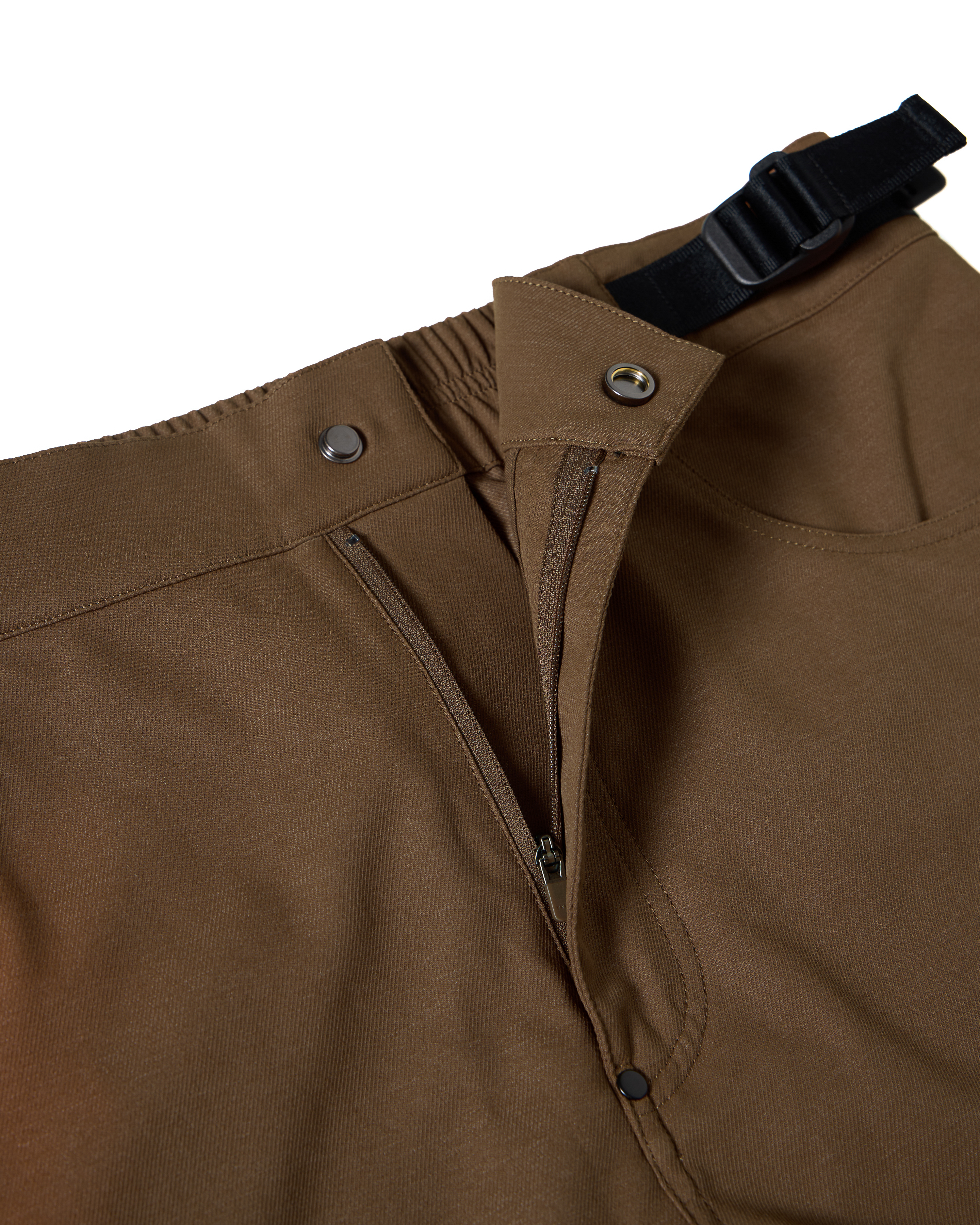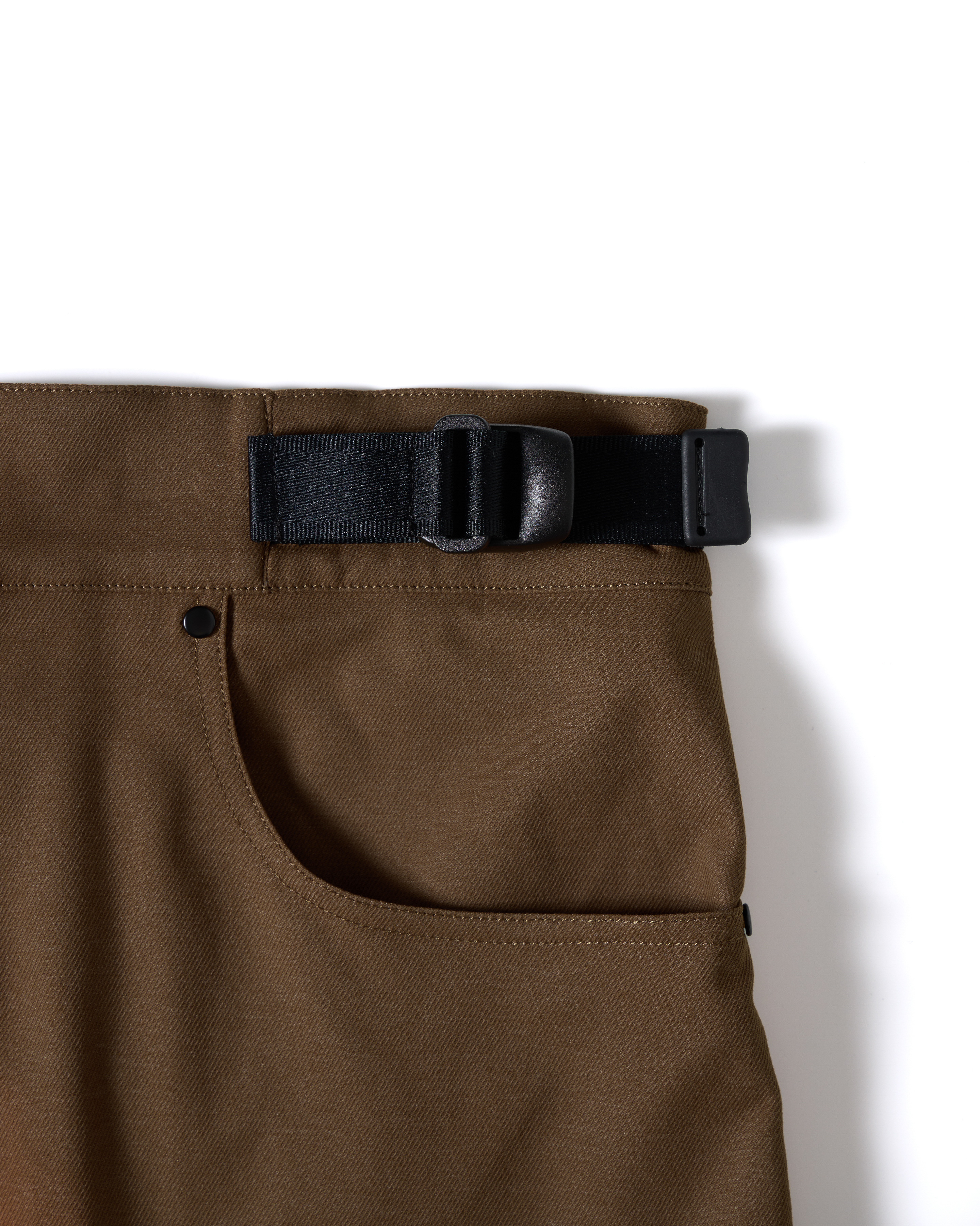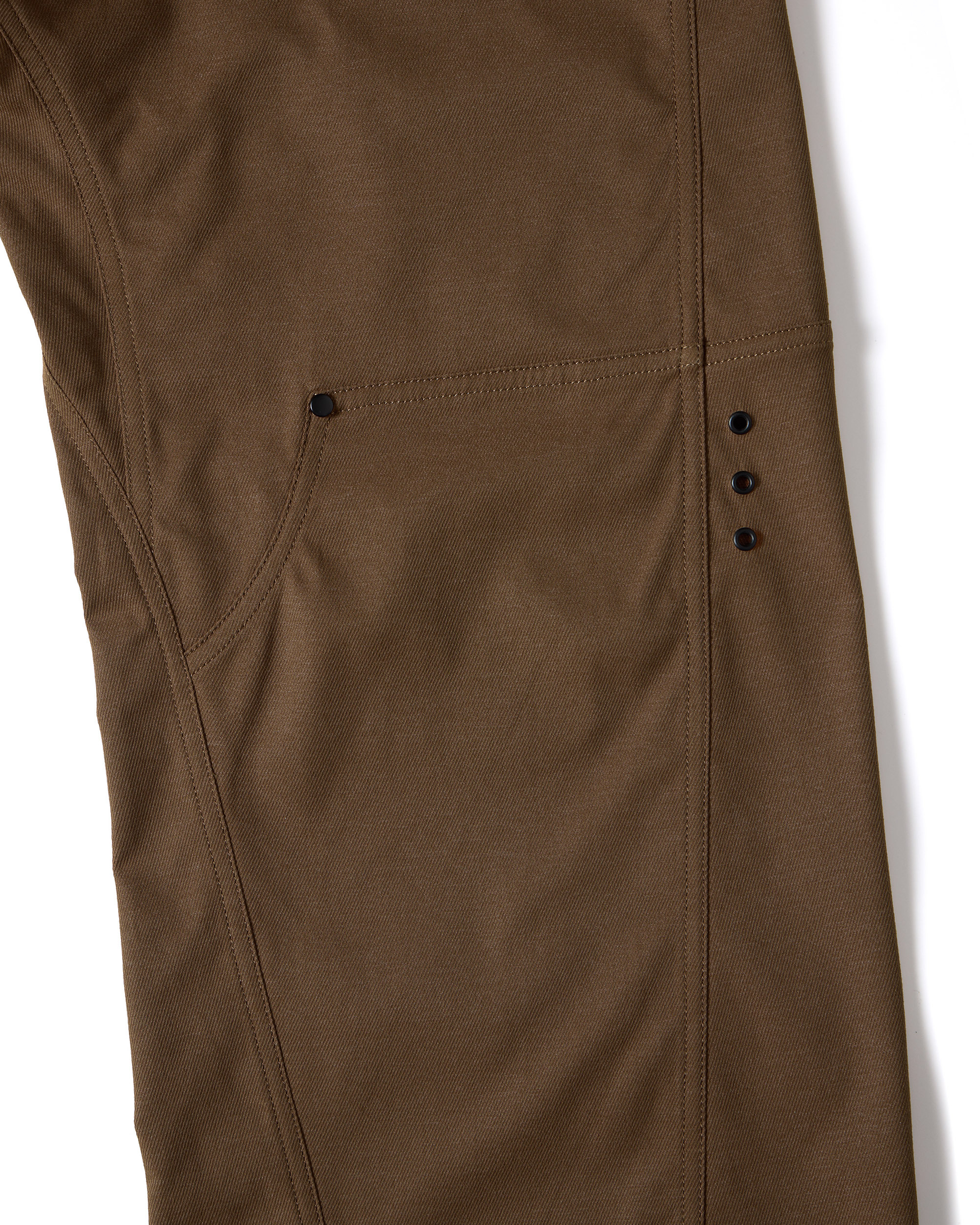 * 輕量防風仿丹寧布料 * D.W.R 防潑水處理 * 介於直筒與靴型間的修身版型 * 立體剪裁並具有流線曲度廓形 * 襠底兩組透氣繡花雞眼 * 後膝側三組透氣塑鋼雞眼 * 霧黑鉚釘補強施力點與裝飾 * 兩側手插口袋設計,右側搭配零錢口袋 * 大腿兩側加入隱藏磁鐵釦口袋 * 右後方 YOKE 線處加入口袋配置 * 模組化腰帶與可調節絆帶系統 * 右後腰頭與右口袋分別加入品牌識別皮標、側夾標 |